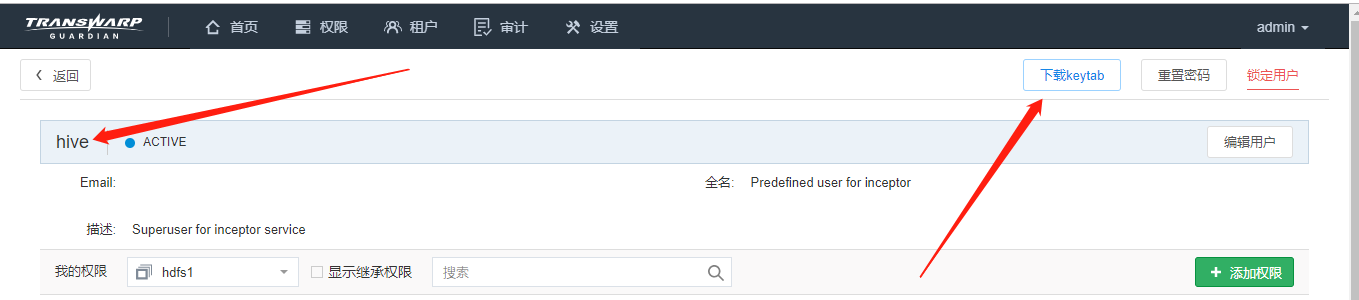 - 用户principle:hive@TDH