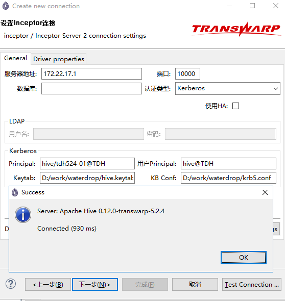 将inceptor server(172.22.17.1)节点的/etc/krb5.conf文件下载到本地,放在D:\work\waterdrop路径下