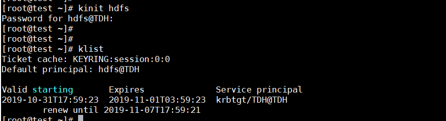 5.集群外进行kinit认证,输入步骤4给hdfs用户设置的密码看是否可以通过,并查看是否获得票据
