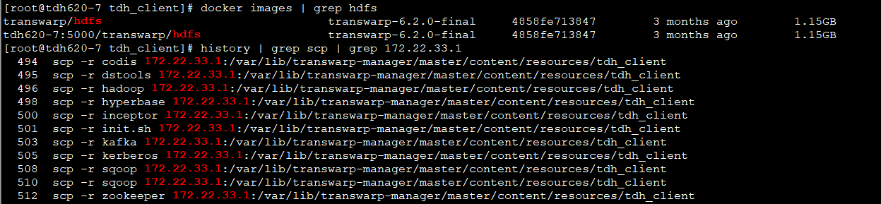 如果有相同版本的集群,从其他的同版本的集群中拷贝这个目录(/var/lib/transwarp-manager/master/content/resources/tdh_client)下除了 conf 和 hosts 的其他文件及文件夹;