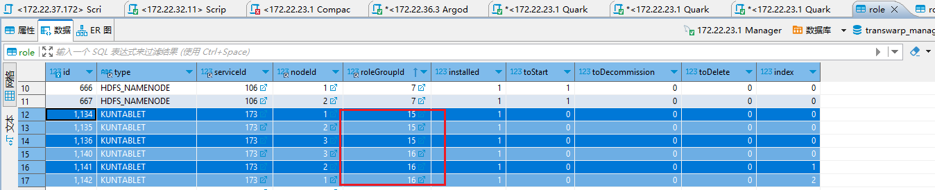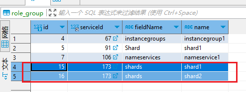 kundb3组件是 3.2.3版本,分布式,部署了多个shard,在manager数据库中能够看到,同一个roleType、serviceId、sericeName下,有2个实例。