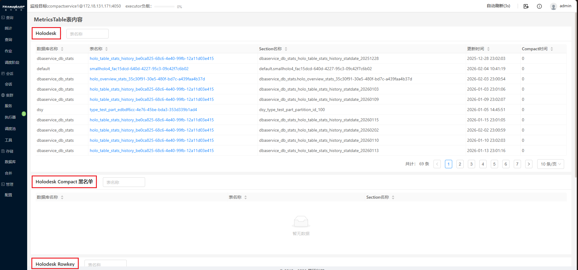 从 9.4.5-final 版本开始,支持通过DBAService进入compact组件页面查看 MetricsTable 表信息,