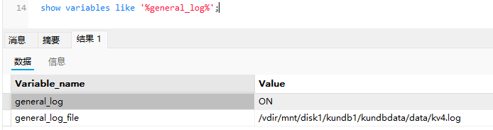 开启之后,通过 show variables like '%general_log%'; 检查开启是否成功,以及日志的输出文件。