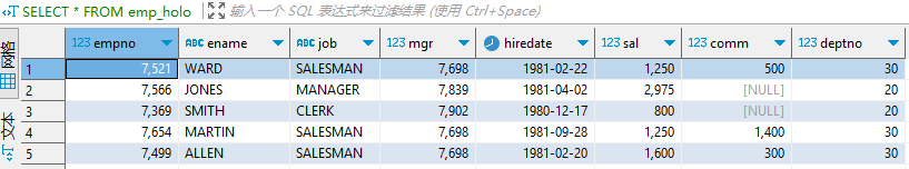 假设在 Oracle 中存在表 emp,表结构如下: