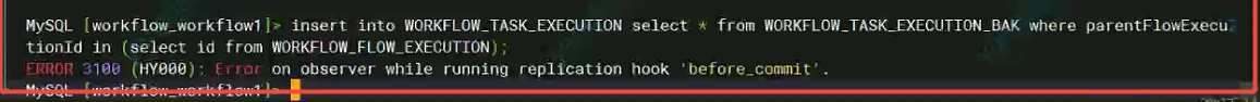 kundb执行大事务sql报错 Error on observer while running replication hook 'before_commit'.
