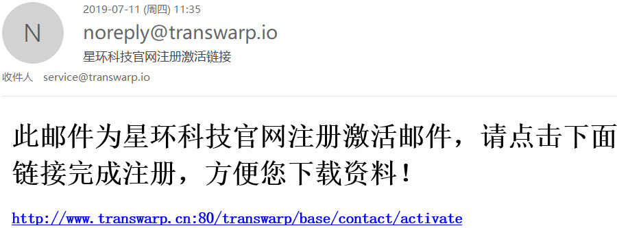 在正常流程中,会收到主题为“星环科技官网注册激活链接”的激活邮件,类似下图所示: