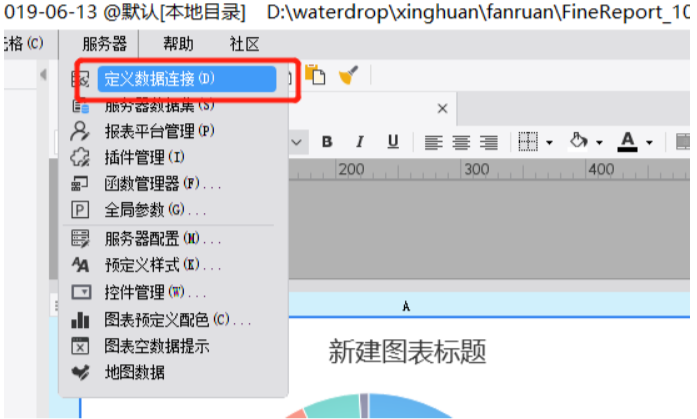 - 在FineReport界面,点击 服务器 > 定义数据库连接