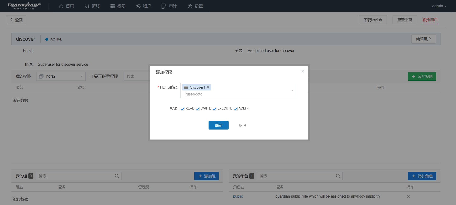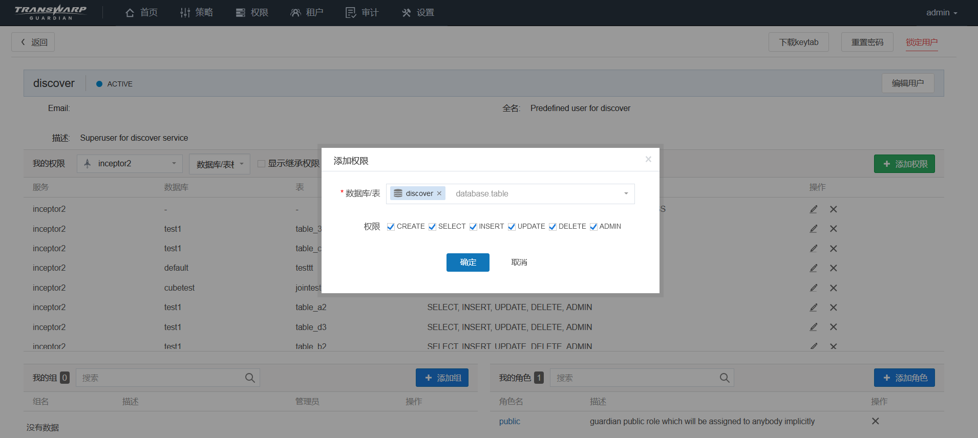 在guardian为discover租户添加inceptor数据库和hdfs权限
