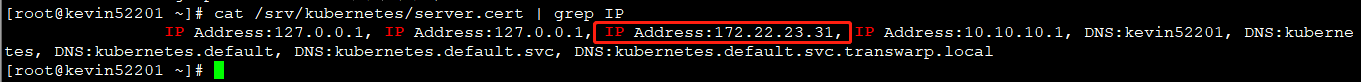 # rm -rf /srv/kubernetes/ca.crt /srv/kubernetes/kubecfg.* /srv/kubernetes/server.* # docker run --volume /srv/kubernetes/:/srv/kubernetes/ --net=host transwarp/gencerts:transwarp-5.2.2-final /usr/bin/entry.sh //此示例中,image为transwarp-5.2.2-final2) 执行完上述命令之后,进到 /srv/kubernetes/ 目录,检查下 kubecfg.pem 是否存在,如果没有生成则需要手动根据如下命令生成