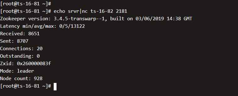2.命令行查看,使用四字命令srvr或mntr(各版本可能略有不同)或者容器内查看