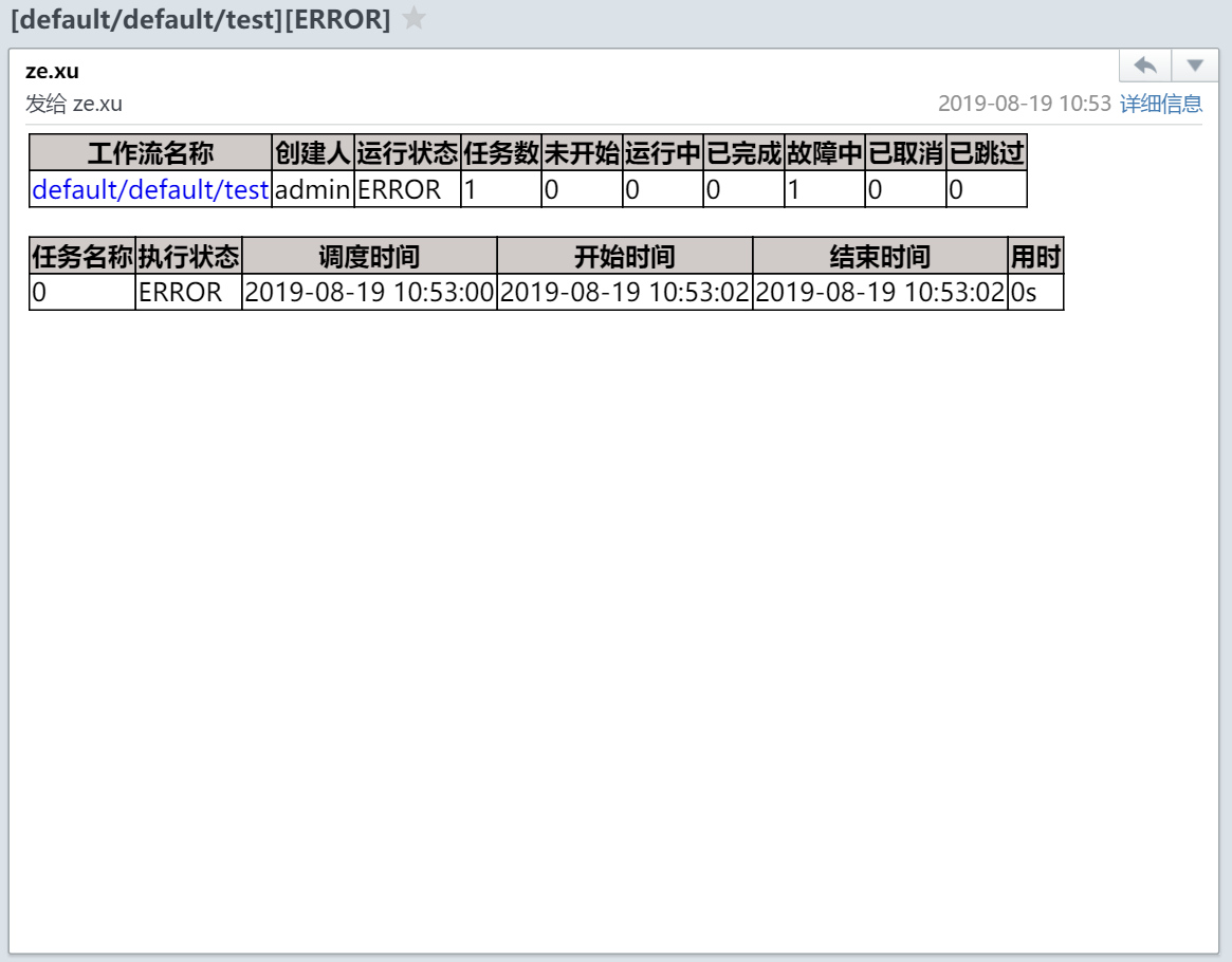 | 名称 | 状态 | 开始时间 | 结束时间 | 运行时间 | 出错信息 |